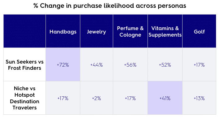 And they’re spending more across retail categories too. Sun-seekers are 72% more likely to buy handbags than winter travelers, signaling a broader, more affluent lifestyle mindset that connects travel with self-expression and reward.