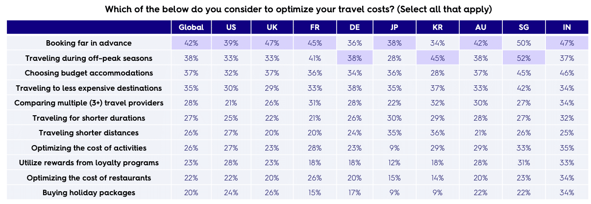 Today’s travelers aren’t cutting back. They’re simply traveling smarter. Nearly half (42%) book early to lock in savings, while 38% choose off-peak travel dates to make budgets go further.