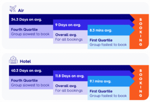 Intent builds consistently after the holidays. Travelers who browse in December are 4x more likely to book in Q1 than those who booked during the holidays. On average, they view 25 hotel listings before making a decision, taking on average 9 days to complete an air travel booking and 12 days to complete a hotel booking.