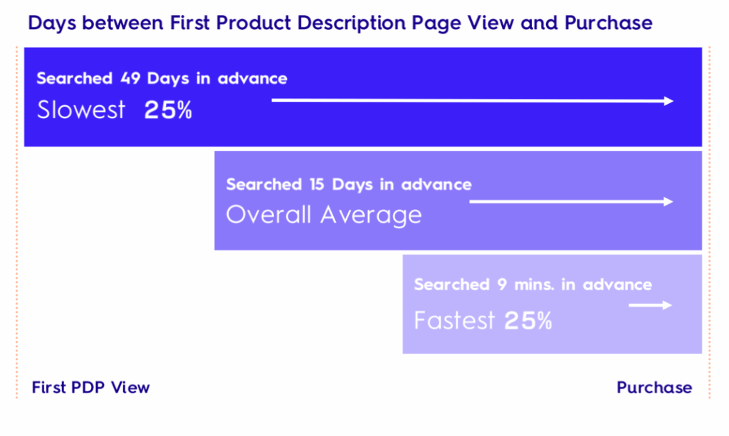 During the 2024 peak week, the average shopper took 15 days from first product page view to purchase. The slowest quartile shopped for more than six weeks before buying, while the fastest converted in minutes.