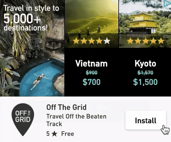 Usa todo o poder da sua marca combinando vários ativos do app, imagens ou vídeos para incentivar a instalação do aplicativo. Inclui um pacote de diferentes criativos.