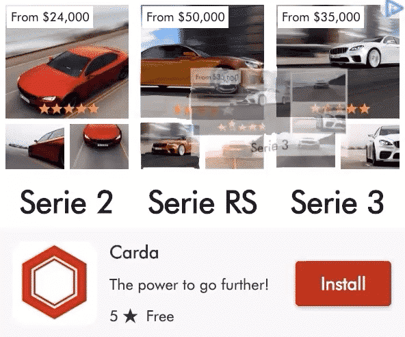 Conta uma história convincente. Ideal quando mais de uma imagem é necessária para transmitir a mensagem. Inclui um pacote de diferentes criativos.