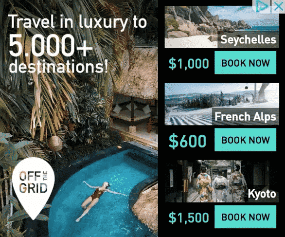 Oferece um recurso de pesquisa dentro do banner que chama a atenção do usuário. Simples, eficiente e perfeito para coletar sinais de intenção e interesses do usuário. Adicione categorias clicáveis para encorajar o usuário a descobrir mais.