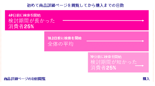 戦略の強化策:キャンペーンは検索やマーケットプレイス、商品ページ、ソーシャルメディアなど、重要なチャネル全体で一貫して展開する必要があります。消費者の購入行動が自信を持って購入する傾向にあるか、慎重に閲覧する傾向があるかを見極め、消費者の意図に合わせてキャンペーン・メッセージを最適化すると良いでしょう。