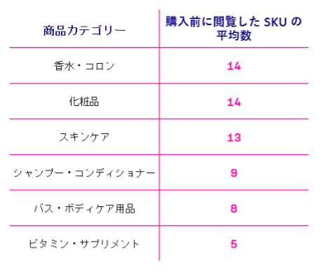美容商品を購入する消費者は、初めて見たものをすぐに購入することはほとんどありません。特にフレグランスやメイク用品、スキンケア商品などの、肌に接触するアイテムは、購入を決断するまでに最大14種類の商品を比較検討します。