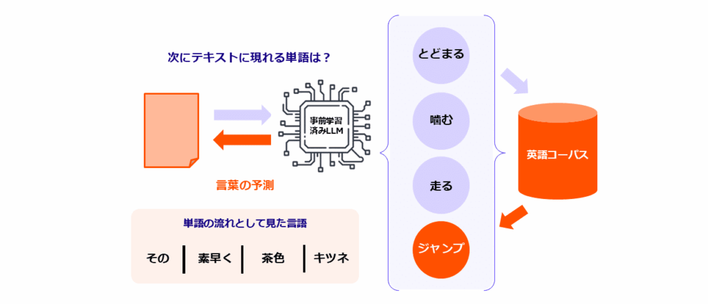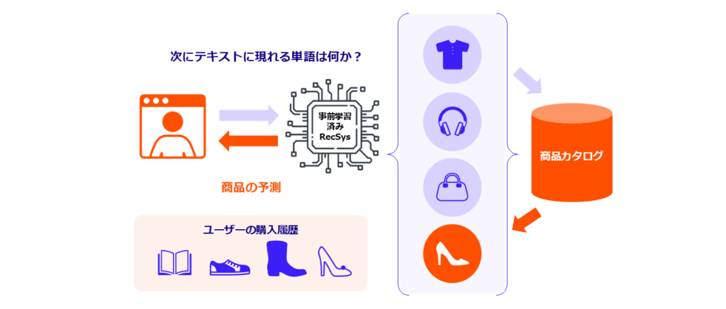 - 事前学習(Pre-training)により、広大な「言葉の地図」を作り、次の言葉や関連商品を予測します。