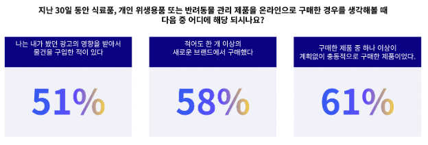 지난 1년간 최대 70%의 소비자가 새로운 브랜드에서 제품을 구매했습니다. 특히 사탕·초콜릿과 가정용 청소용품 소비자들이 브랜드를 가장 많이 바꾸는 것으로 나타났습니다. 즉, 소비자들은 매주 다양한 브랜드를 살펴보고 있다는 것입니다. 이것은 마케터에게 눈에 띄면서 개인화된 메시지와 경쟁력 있는 가격을 적절히 조합한 전략으로 새로운 고객을 확보할 수 있는 기회가 될 수 있습니다.