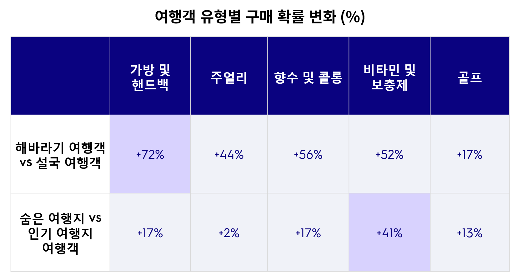 이들의 소비는 여행에만 머물지 않습니다. 이열치한 여행자들은 설국 여행자에 비해 가방을 구매할 가능성이 72% 더 높아, 여행을 자기 표현이자 스스로를 위한 보상으로 받아들이는 라이프스타일을 보여줍니다. 여행과 리테일 소비가 하나의 흐름으로 이어지고 있다는 것을 시사합니다.