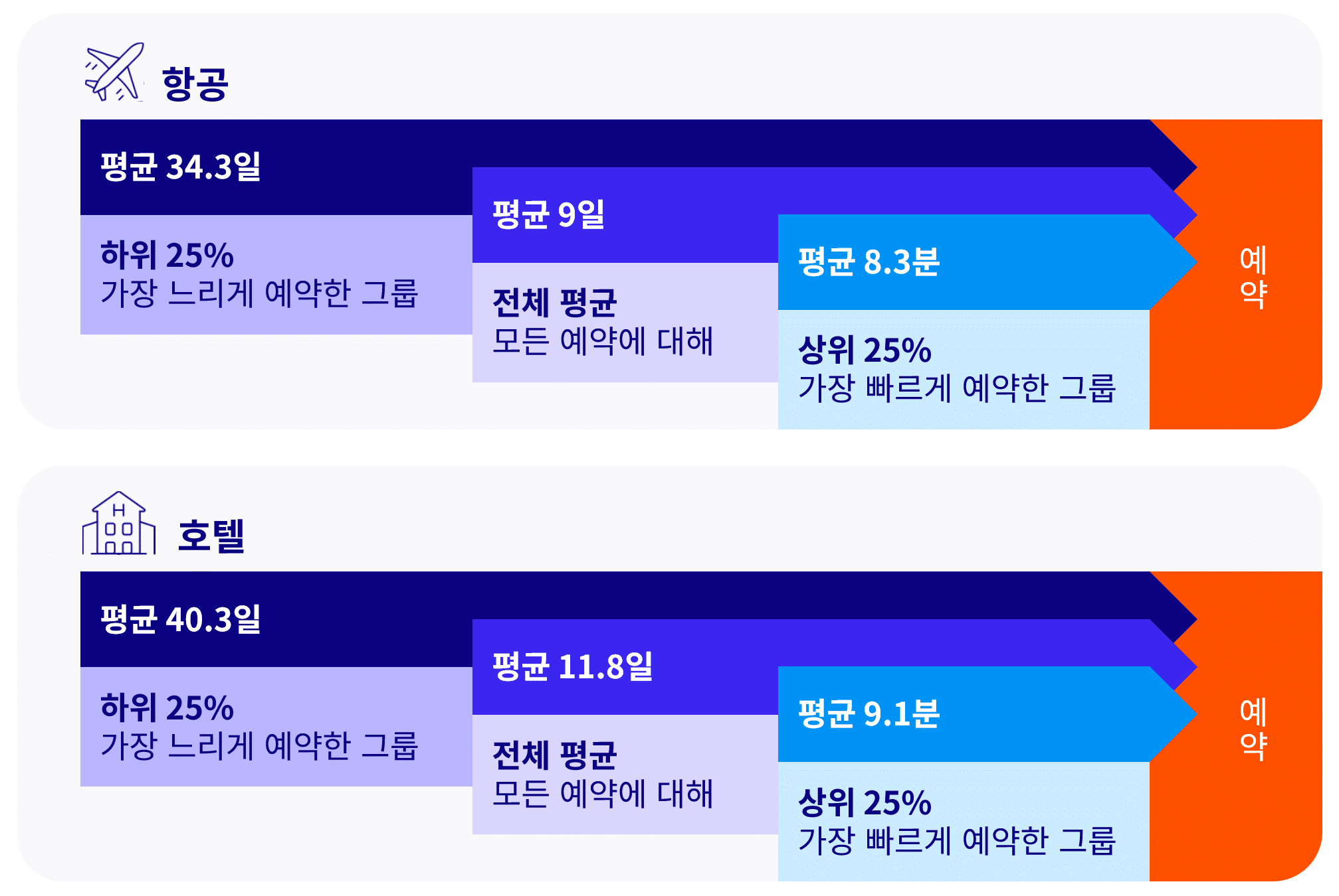 출처: 크리테오 설문 조사— 소비자 여행 선호도, 2025년 9월, 전 세계, N=10,170이러한 변화는 조기 예약, 비수기 여행, 유연한 혜택 선호라는 구체적인 행동으로 이어지고 있습니다. 마케터는 실시간 가격 전략, AI 기반 추천, 그리고 지속적인 고객 커뮤니케이션을 통해 이러한 여행 소비 트렌드에 자연스럽게 맞춰갈 수 있습니다. 투명한 가격 정책과 유연한 예약 옵션, 여기에 프리미엄 감성의 패키지 상품을 결합해, 브랜드를 더 스마트한 여행을 돕는 신뢰할 수 있는 파트너로 포지셔닝하는 것이 중요합니다.